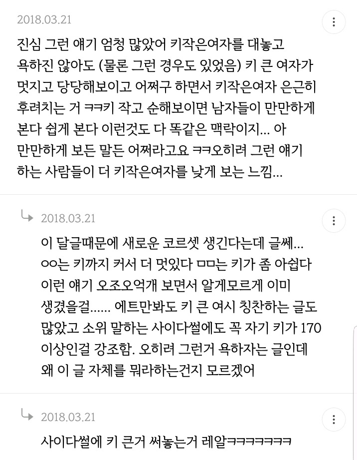 페미 이후 키 작은 여자 코르셋 생긴게 안타까운 달글 막이슈 쭉빵카페
