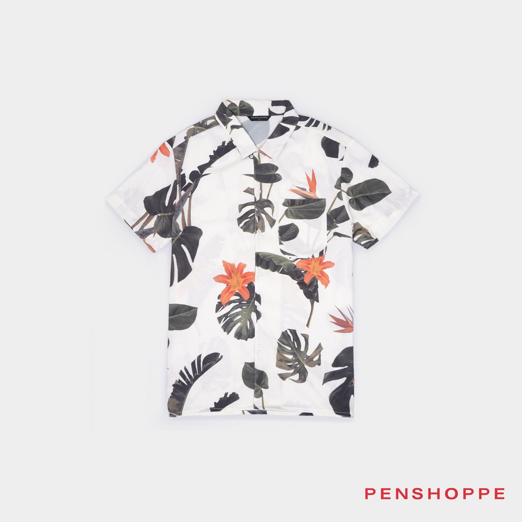 Penshoppe Tropical Resort Shirt For Men Off White Shopee Philippines